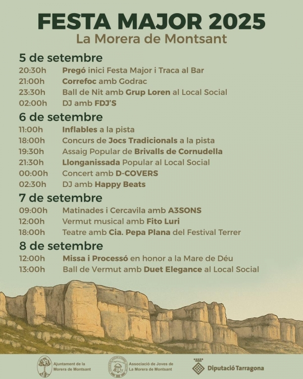 La Diputació de Tarragona, dins de la convocatòria de subvencions als ajuntaments i entitats municipals descentralitzades per a la contractació de les activitats incloses en el catàleg de programacions culturals dels ens locals (E-catàleg) durant l'any 2025, va atorgar el següent import a l'Ajuntament de La Morera de Montsant: