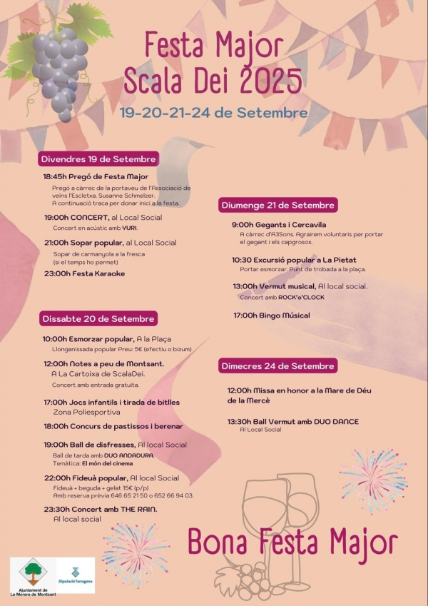 Amb aquesta subvenció es finançaran diversos actes i activitats culturals i festius realitzats durant l'any, entre ells, s'han finançat alguns dels que s'han dut a terme a la Festa Major de La Morera de Montsant i a la de Scala Dei.