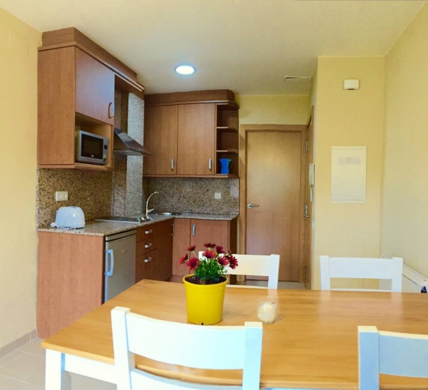 Els apartaments son de 55 m2 amb habitació de matrimoni, cuina-menjador ampli i bany.