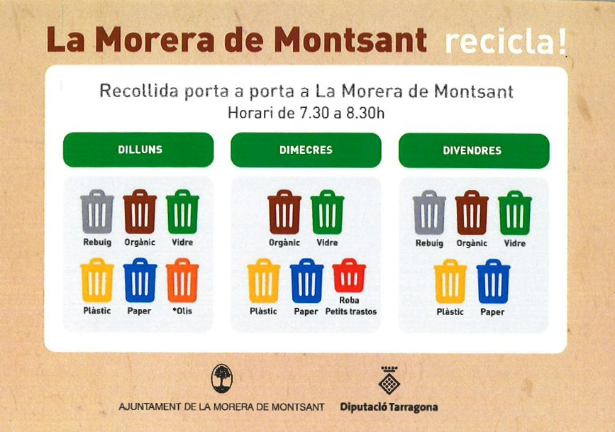 *Els olis usats es recolliran, preferentment, a la deixalleria mòbil o els dilluns, porta a porta.